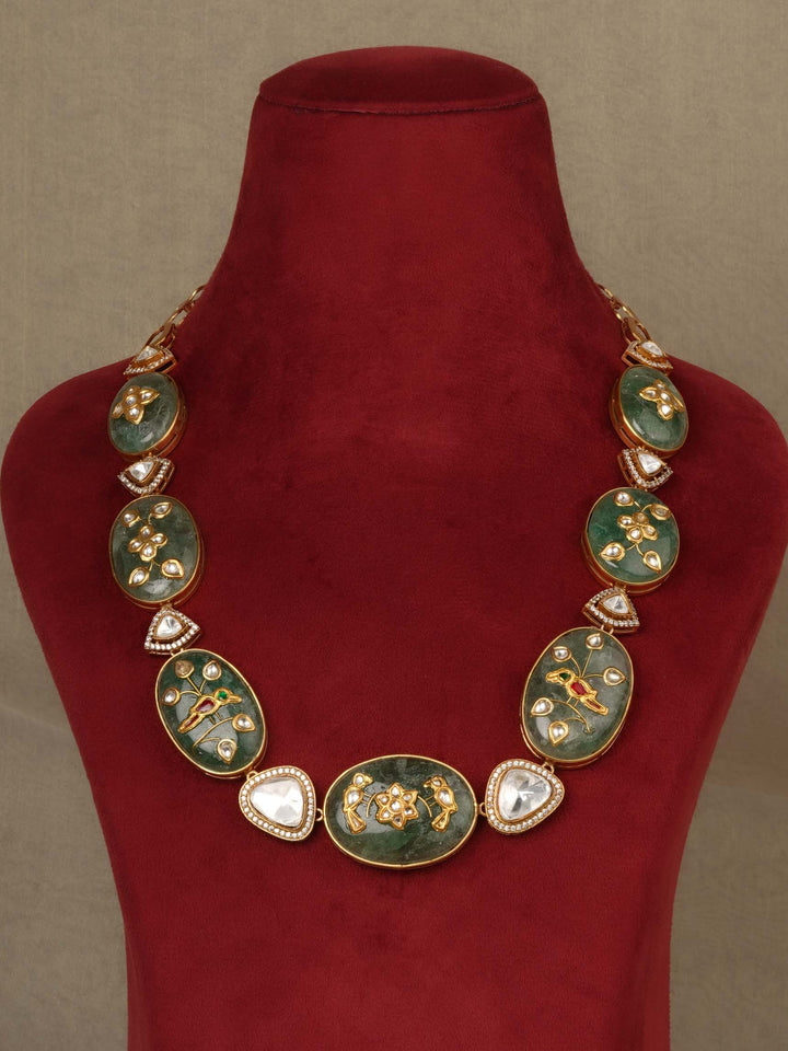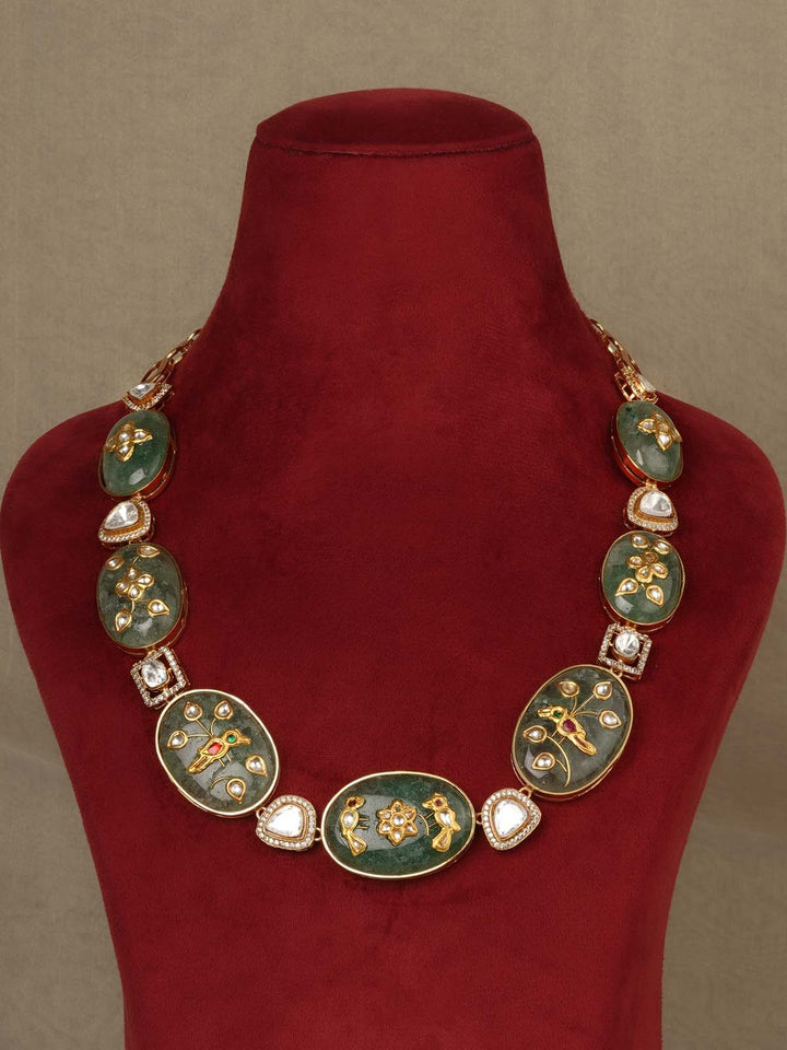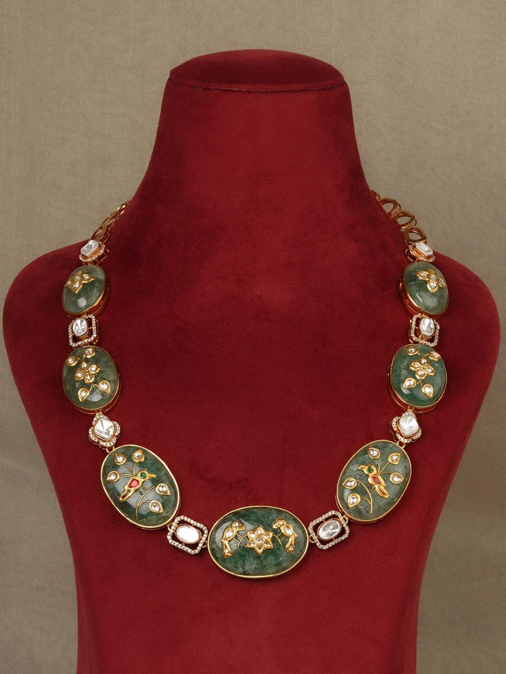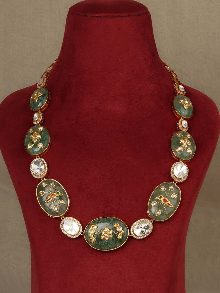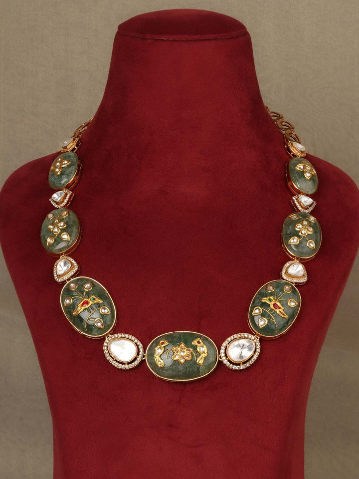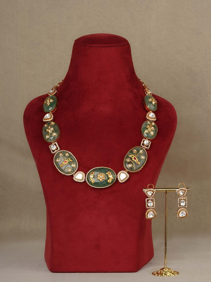 Green Color Gold Plated Contemporary Necklace Set - CC-S38