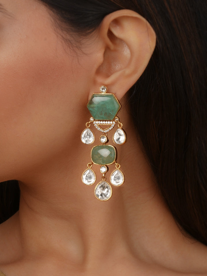 Green Color Gold Plated Faux Polki Earrings - PK-E141