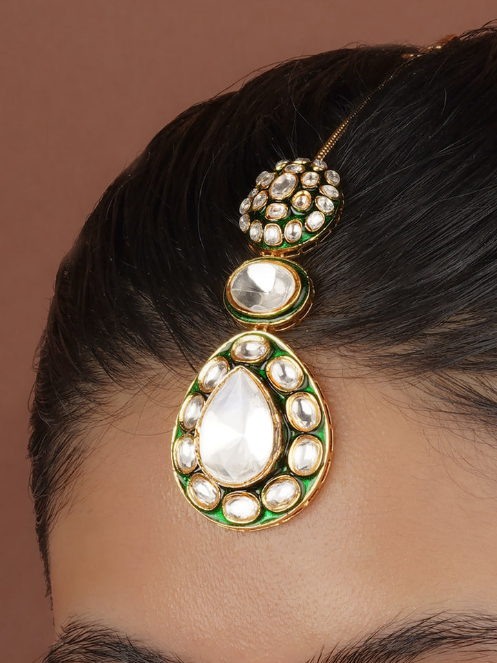Green Color Gold Plated Faux Polki Maangteeka - PK-T43