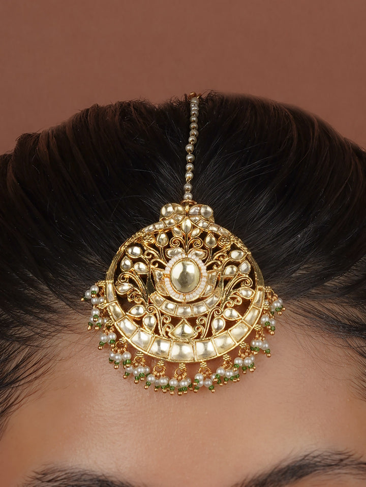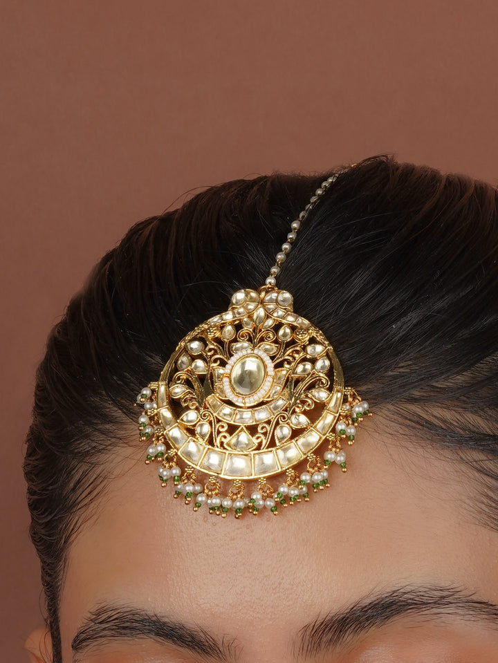 Green Color Gold Plated Jadau Kundan Maangteeka - MT510Y