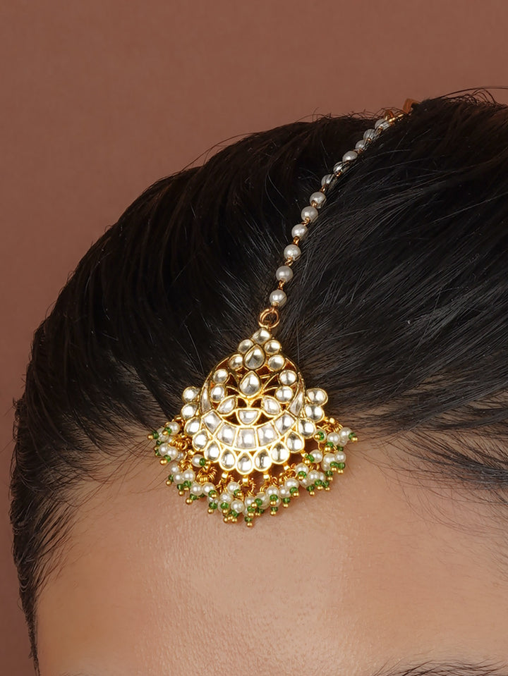 Green Color Gold Plated Jadau Kundan Maangteeka - MT517Y