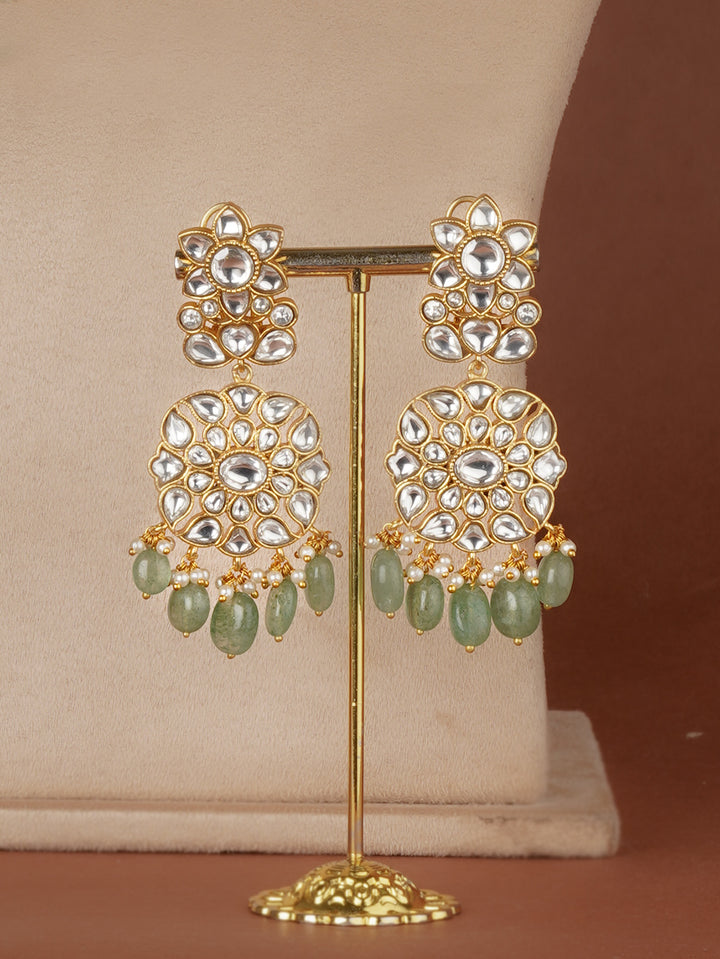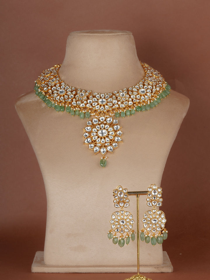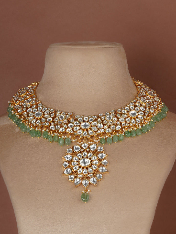 Green Color Gold Plated Jadau Kundan Necklace Set - MS2680