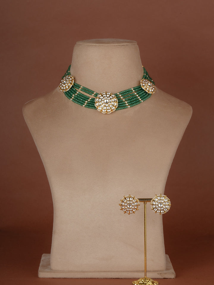Green Color Gold Plated Jadau Kundan Necklace Set - MS2708