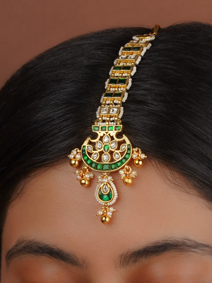 Green Color Gold Plated Mishr Maangteeka - MR-T86WGR