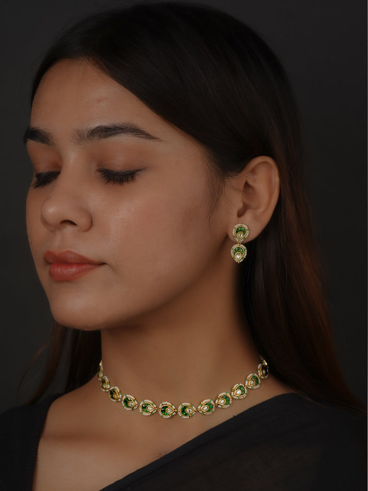 Green Color Gold Plated Mishr Necklace Set - MR-S988WGR