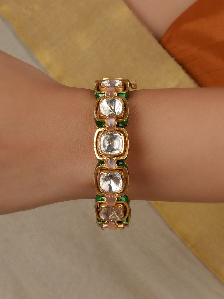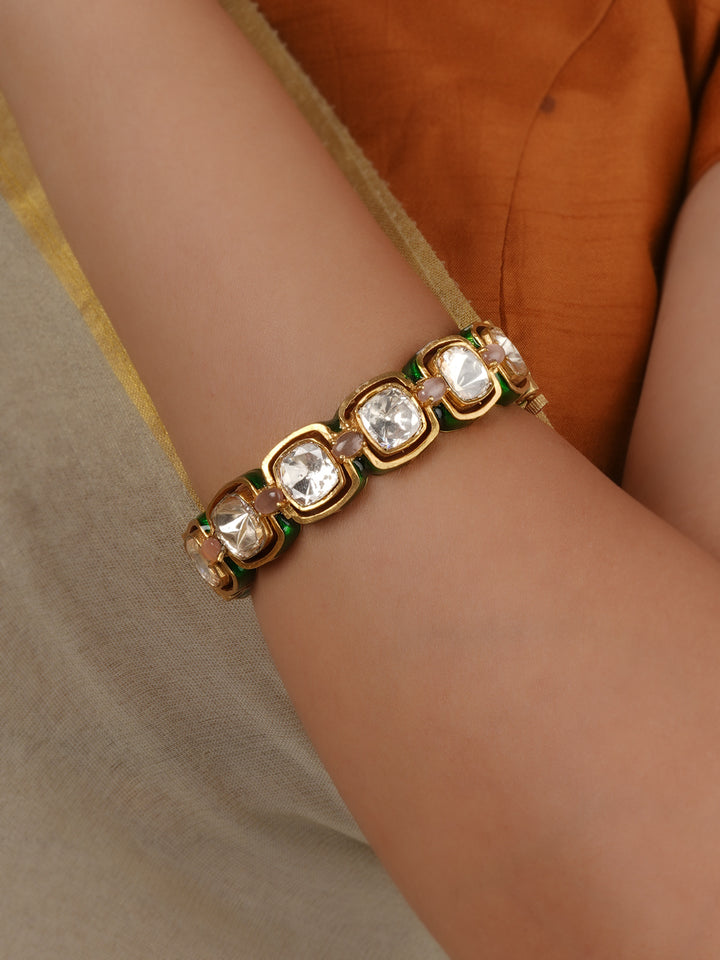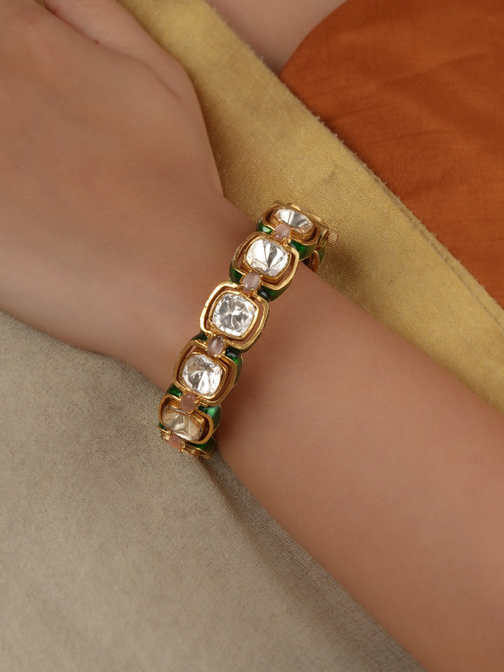Green Color Gold Plated Moissanite Bangles (One Pair) - MO-B23GRA