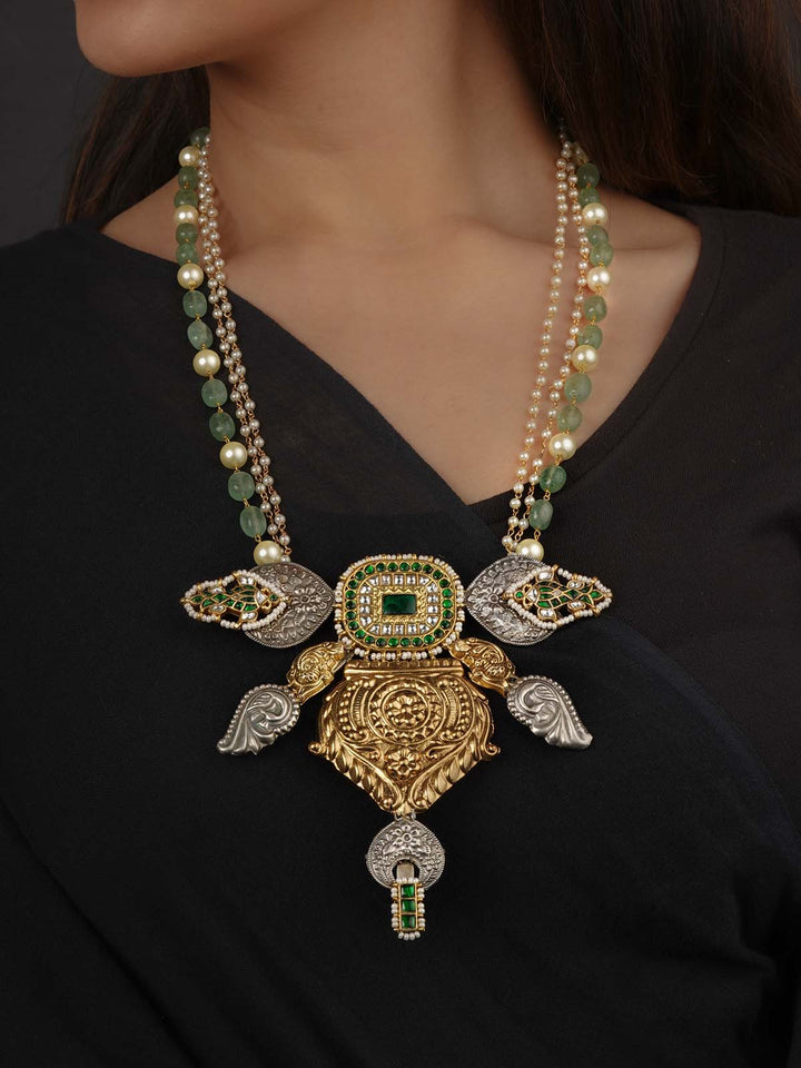 Green Color Tribal Necklace - EK-SFNECK556WGRA