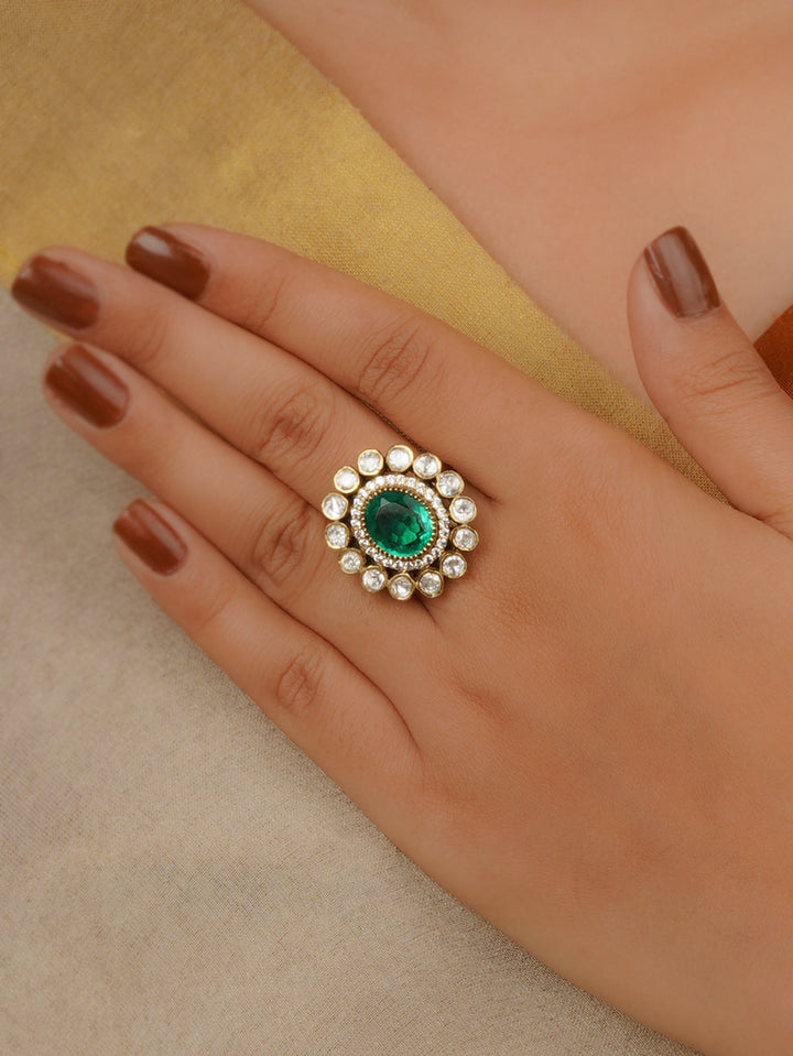Green Color Victorian 925 Silver Ring - VCSL925-RNG17