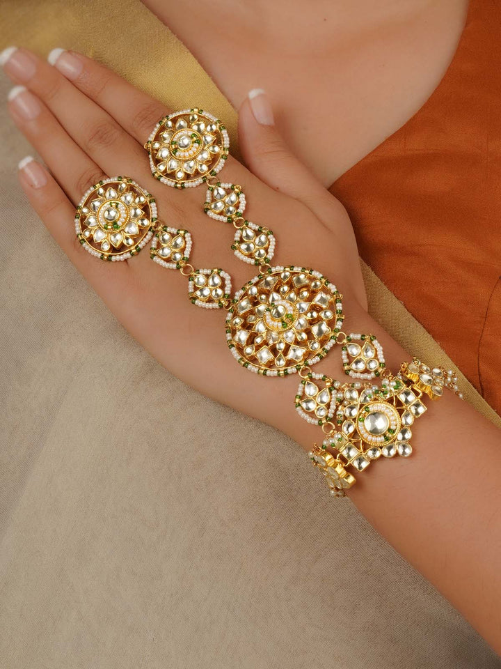 Gold Plated Jadau Kundan Hathphool (1 Piece) - MHP107