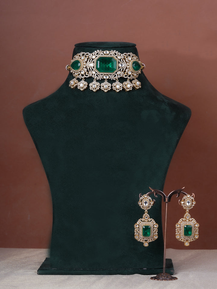 Green Color Moissanite Necklace Set - MO-S13WGR