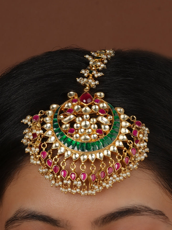 Multicolor Gold Plated Jadau Kundan Maangteeka - MT300M