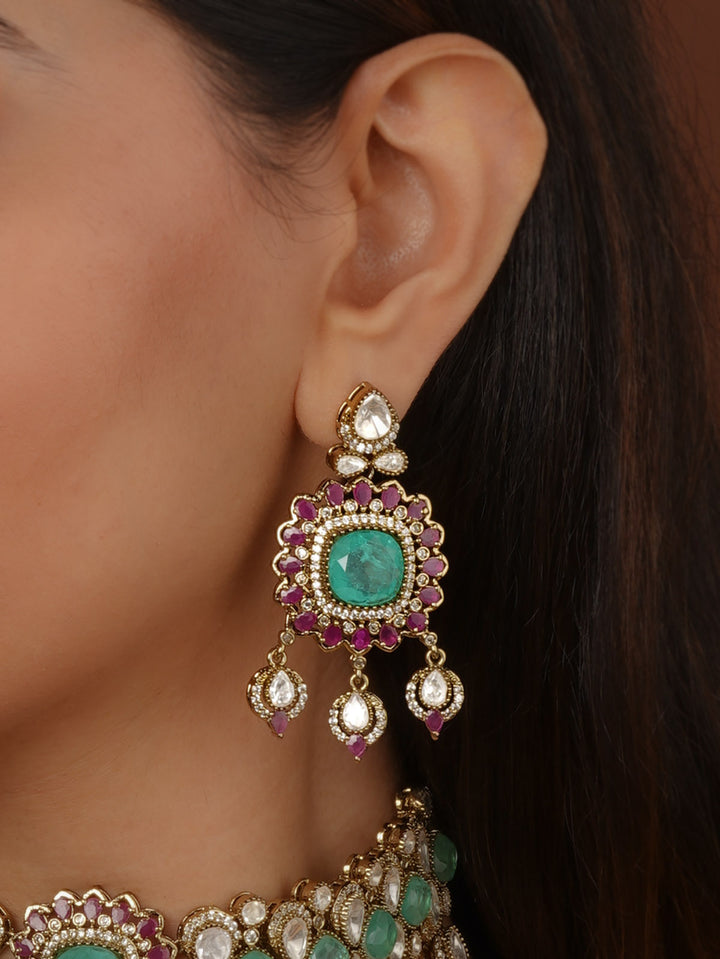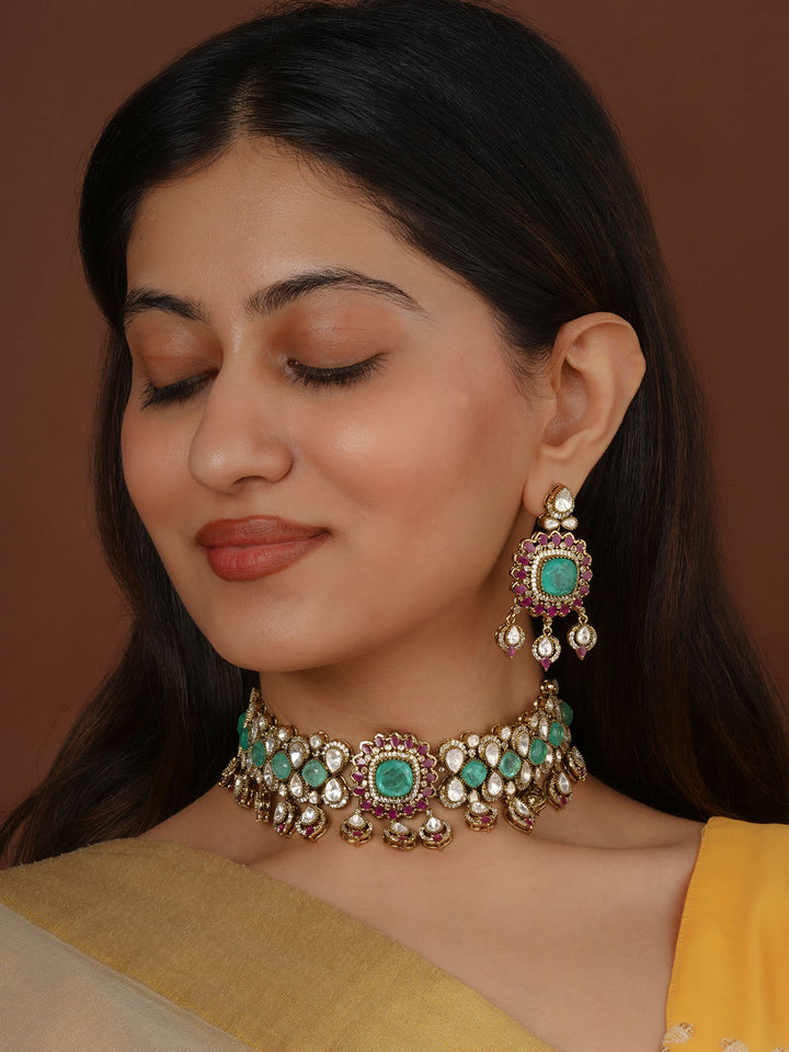 Multicolor Gold Plated Faux Polki Necklace Set - PK-S406M