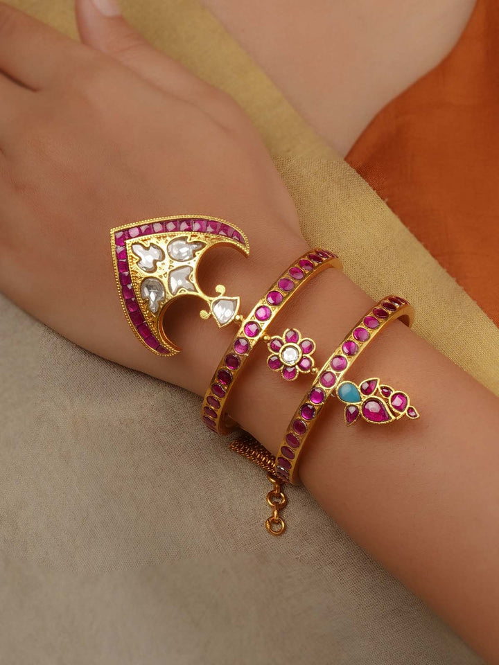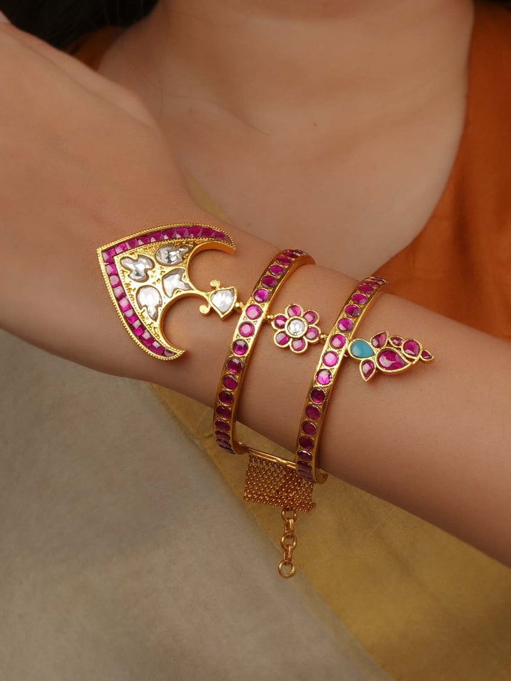 Multicolor Gold Plated Jadau Kundan Bracelet (1 Piece) - MBRAC14M