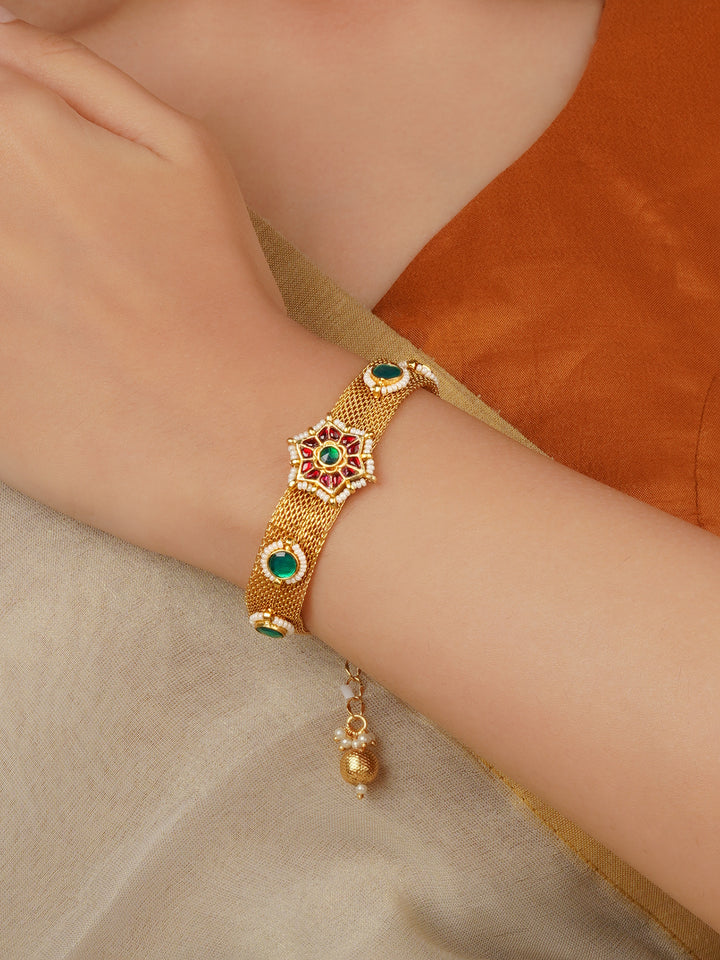 Multicolor Gold Plated Jadau Kundan Bracelet (1 Piece) - MHP263M