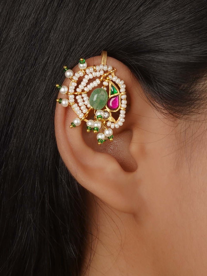 Multicolor Gold Plated Jadau Kundan Earrings - ME1316M