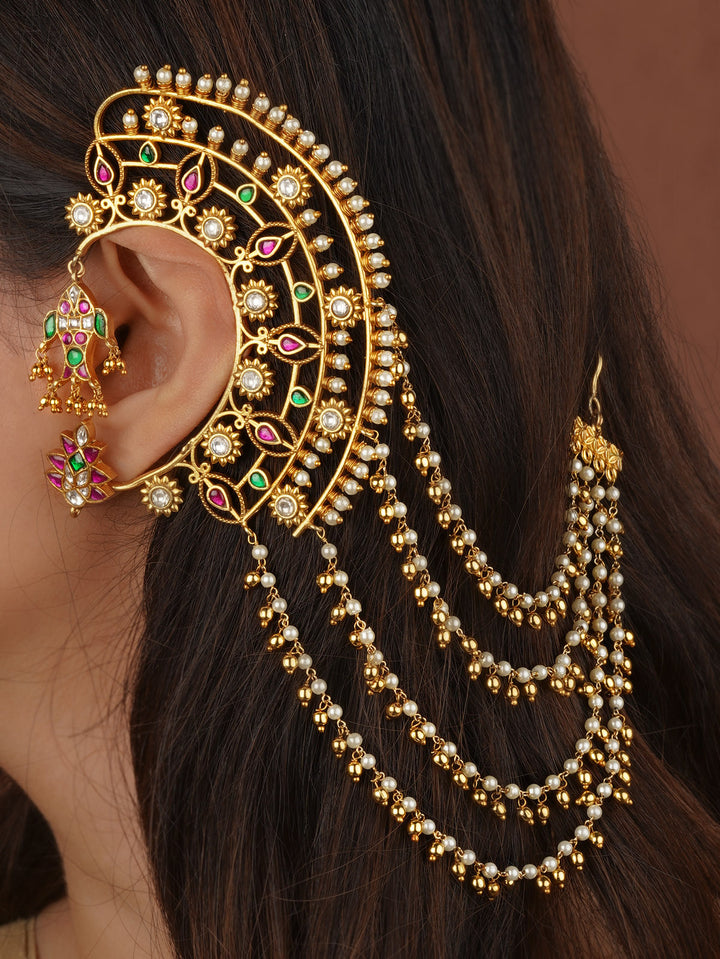 Multicolor Gold Plated Jadau Kundan Earrings - ME1320M