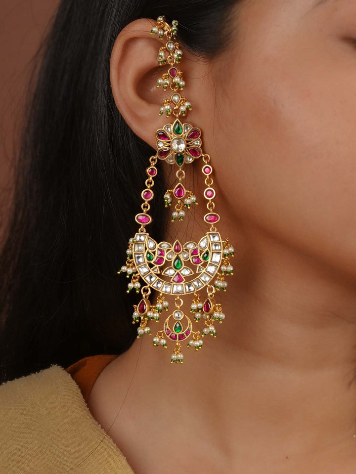 Multicolor Gold Plated Jadau Kundan Earrings - ME1412