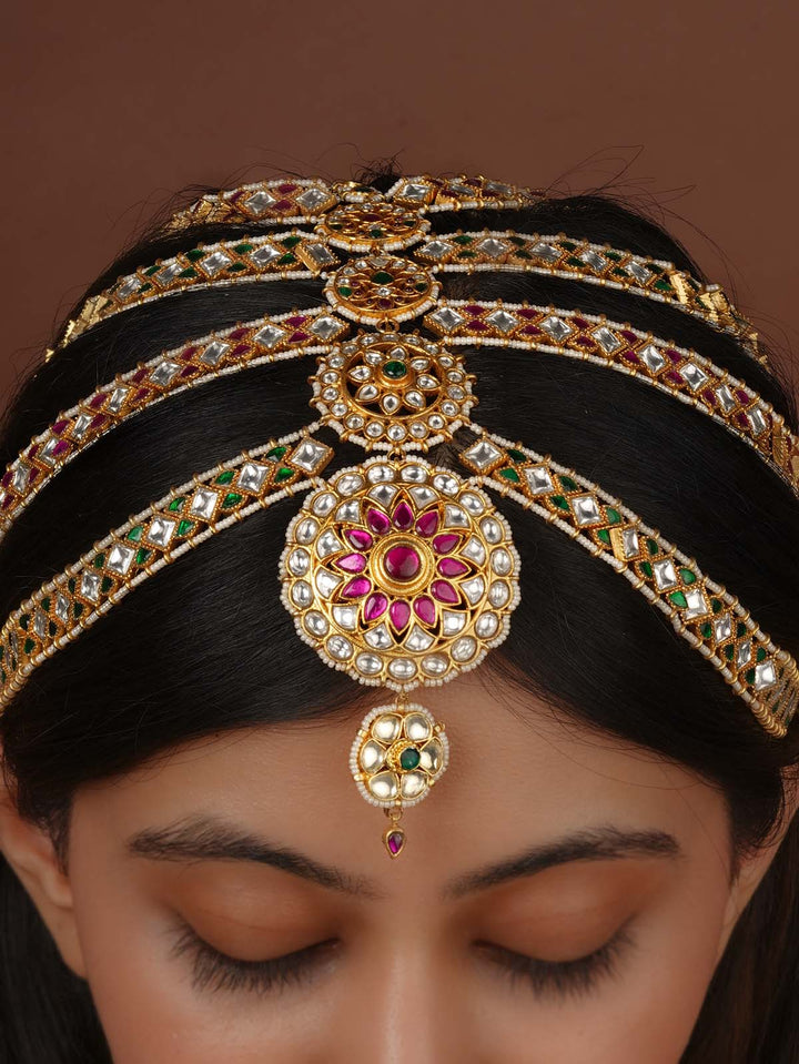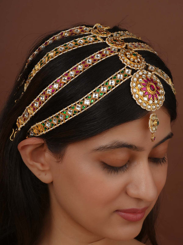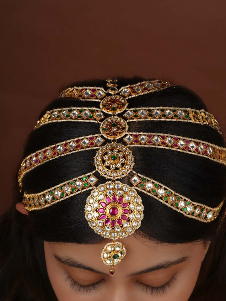 Multicolor Gold Plated Jadau Kundan Mathapatti - MM131M