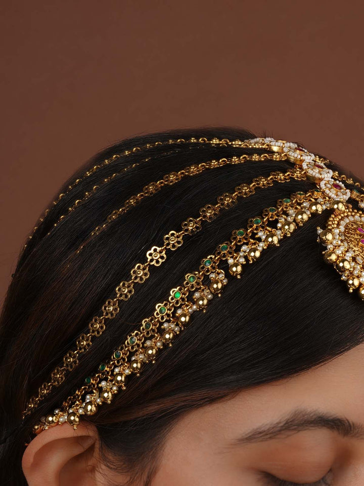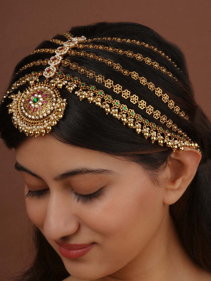 Multicolor Gold Plated Jadau Kundan Mathapatti - MM132M