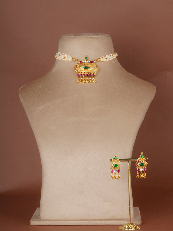 Multicolor Gold Plated Jadau Kundan Necklace Set - MS1081