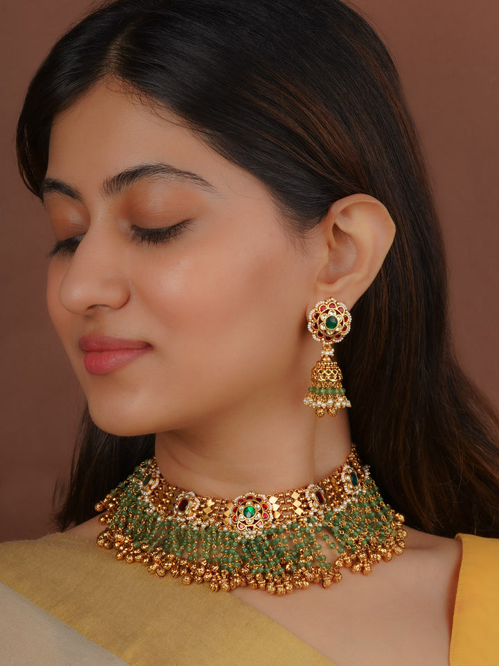 Multicolor Gold Plated Jadau Kundan Necklace Set - MS2507M