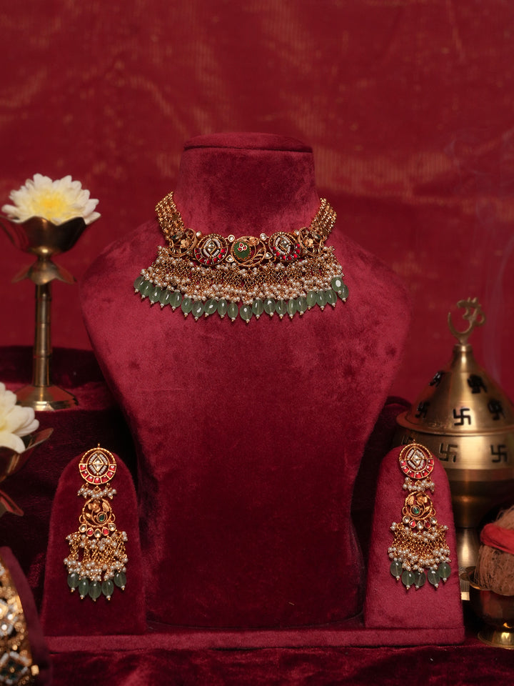 Multicolor Gold Plated Jadau Kundan Necklace Set - MS2673M