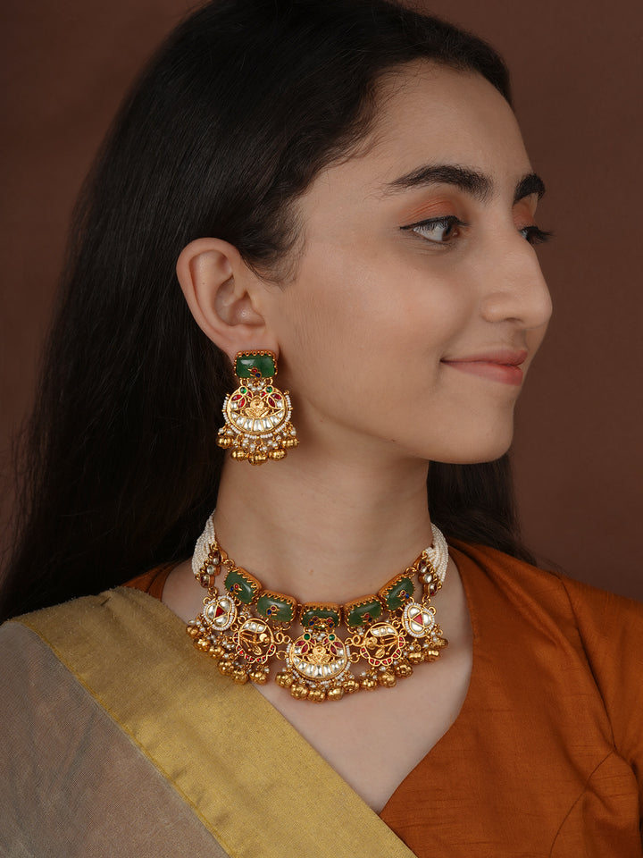 Multicolor Gold Plated Jadau Kundan Necklace Set - MS2758M