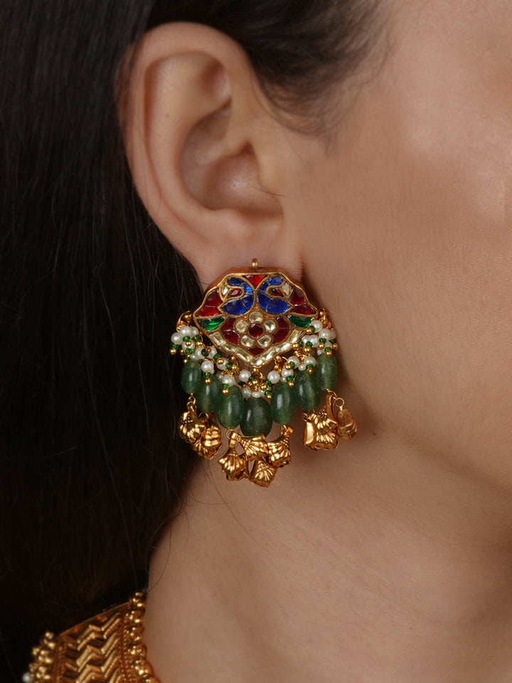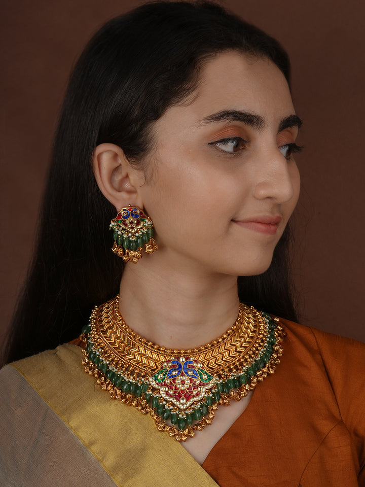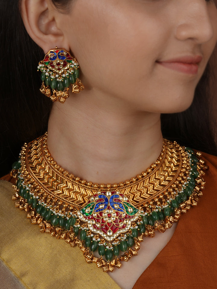 Multicolor Gold Plated Jadau Kundan Necklace Set - MS2759M