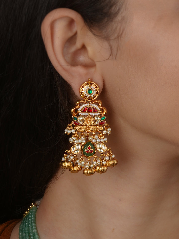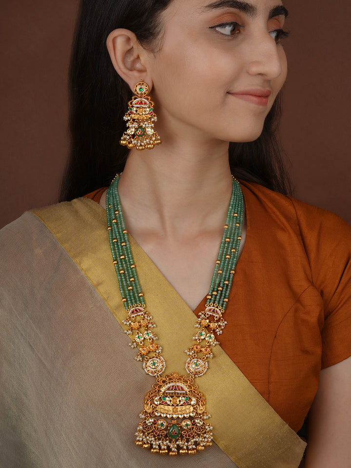 Multicolor Gold Plated Jadau Kundan Necklace Set - MS2760M