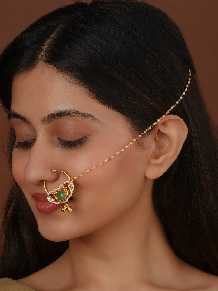 Multicolor Gold Plated Jadau Kundan Nosering - MNTH209M