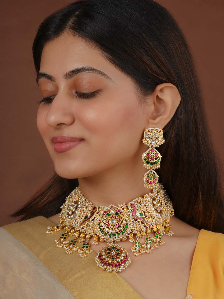 Mishr, by Mortantra is a collection of handcrafted Indian jewellery made with motifs of several kinds, having many different forms, features and emotions. Made with hand fully picked motifs, new and old, semi-precious beads and stones, our Mishra jewellery is an amalgamation of heritage and heirloom jewellery traditions and the rich craftsmanship of India. The jewellery is 22kt gold plated and finished in cultured pearls and takes pride in being skillfully crafted by the few of the finest jewellery artisans of our country.