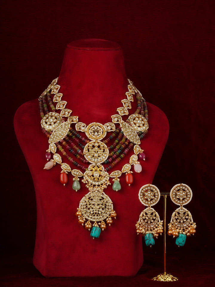 Multicolor Gold Plated Mishr Necklace Set - MR-S841
