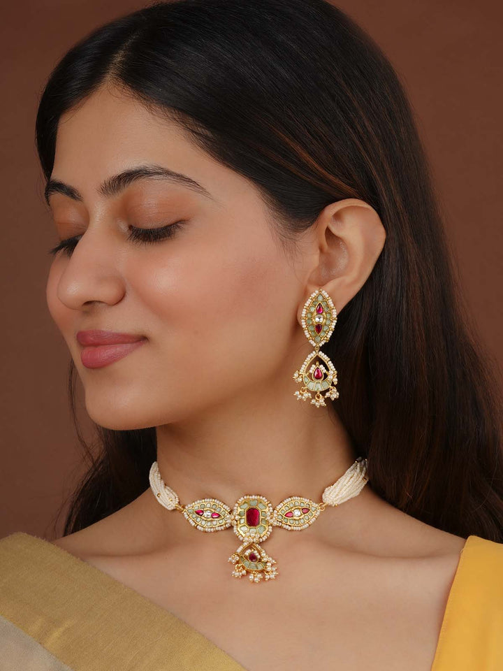 Mishr, by Mortantra is a collection of handcrafted Indian jewellery made with motifs of several kinds, having many different forms, features and emotions. Made with hand fully picked motifs, new and old, semi-precious beads and stones, our Mishra jewellery is an amalgamation of heritage and heirloom jewellery traditions and the rich craftsmanship of India. The jewellery is 22kt gold plated and finished in cultured pearls and takes pride in being skillfully crafted by the few of the finest jewellery artisans of our country.