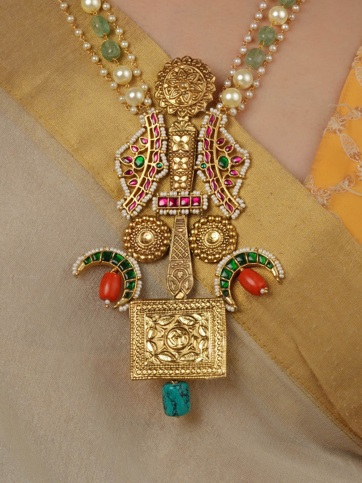 Multicolor Gold Plated Mishr Tribal Necklace - MR-N75M
