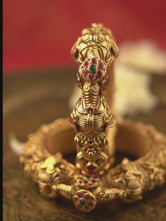 Our Temple jewellery finds its origins in the royal courts and temples of ancient India. Over time, Temple jewelry evolved to become an integral part of our culture and we our temple jewels will always be a remembrance of the celebration of Kemp stones and colorful gems.