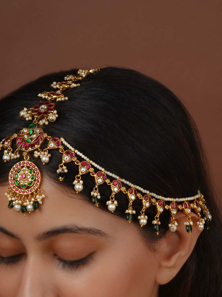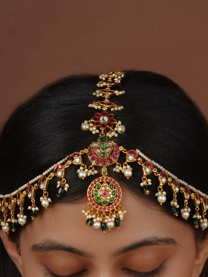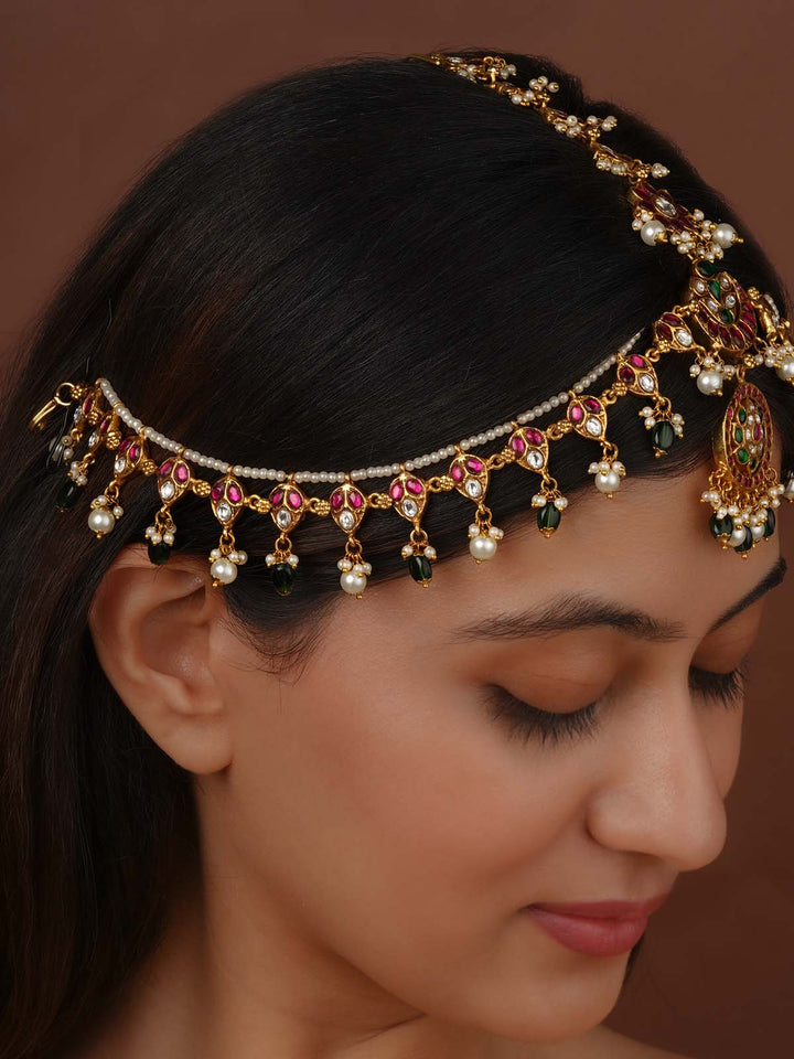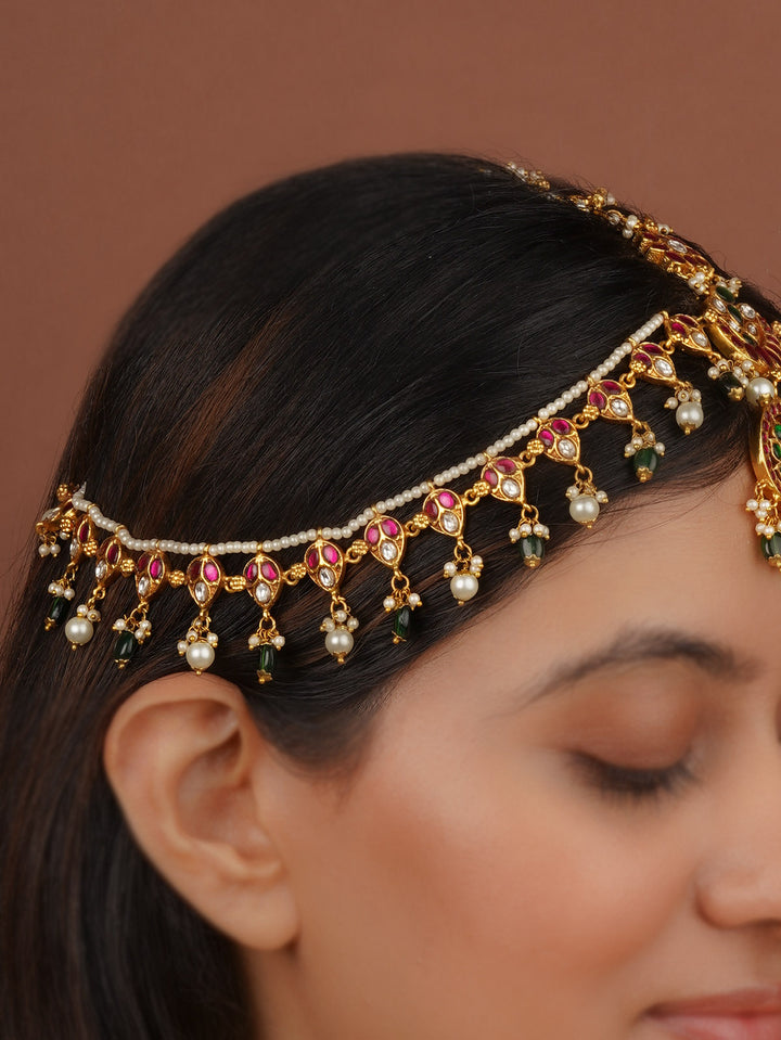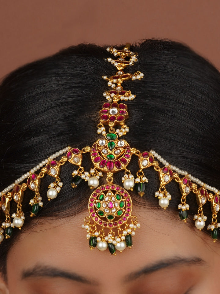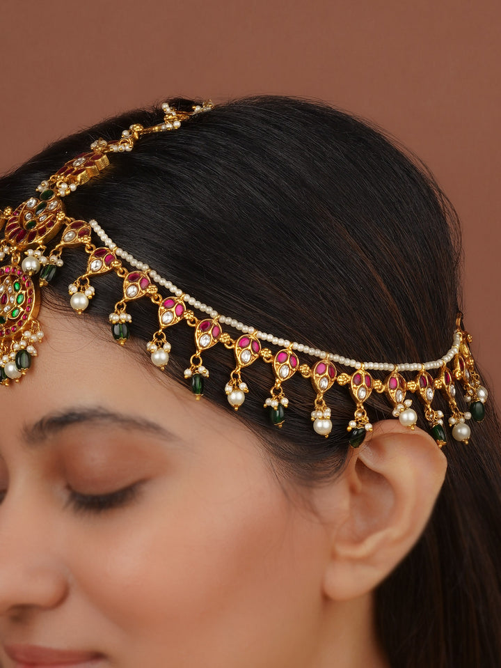 Multicolor Gold Plated Temple Mathapatti - TMPMM7