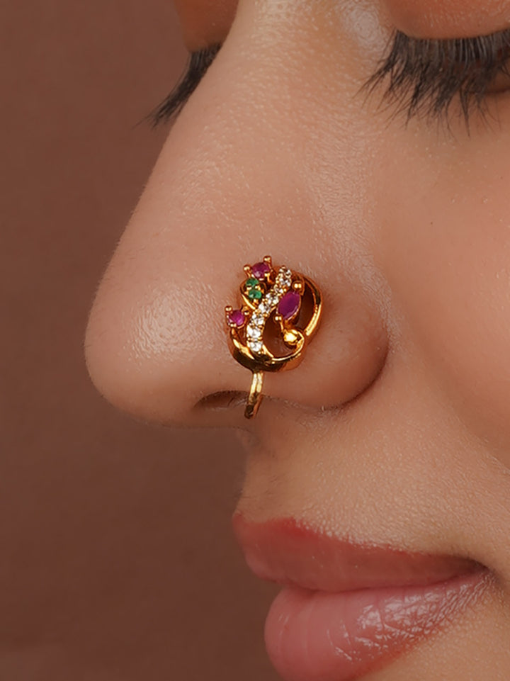 Multicolor Gold Plated Temple Nosepin - TMPNTH45