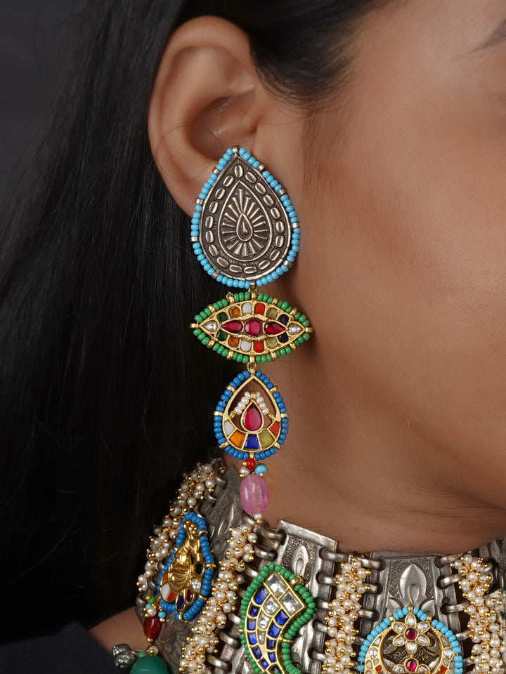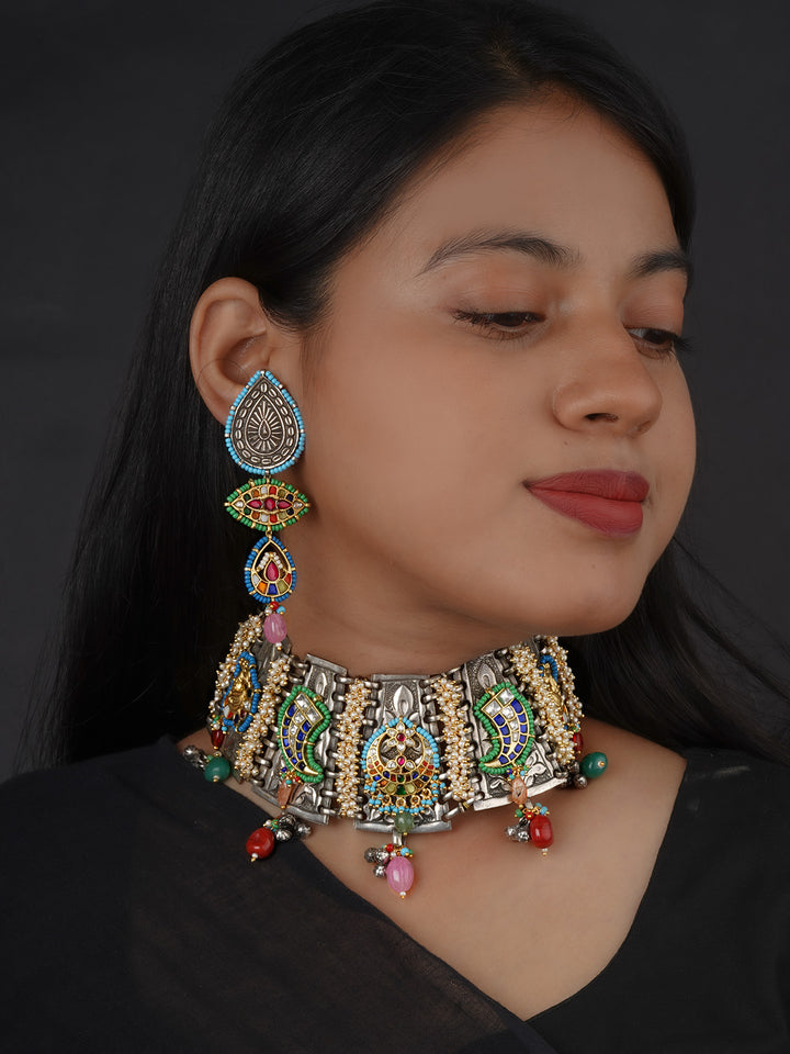 Navratna Tribal Necklace Set - EK-SFSET444N