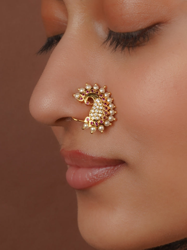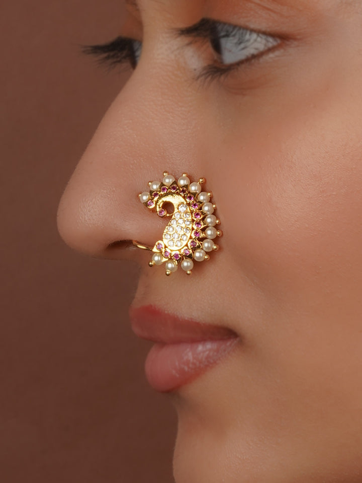 Pink Color Gold Plated Temple Nosering - TMPNTH50WP