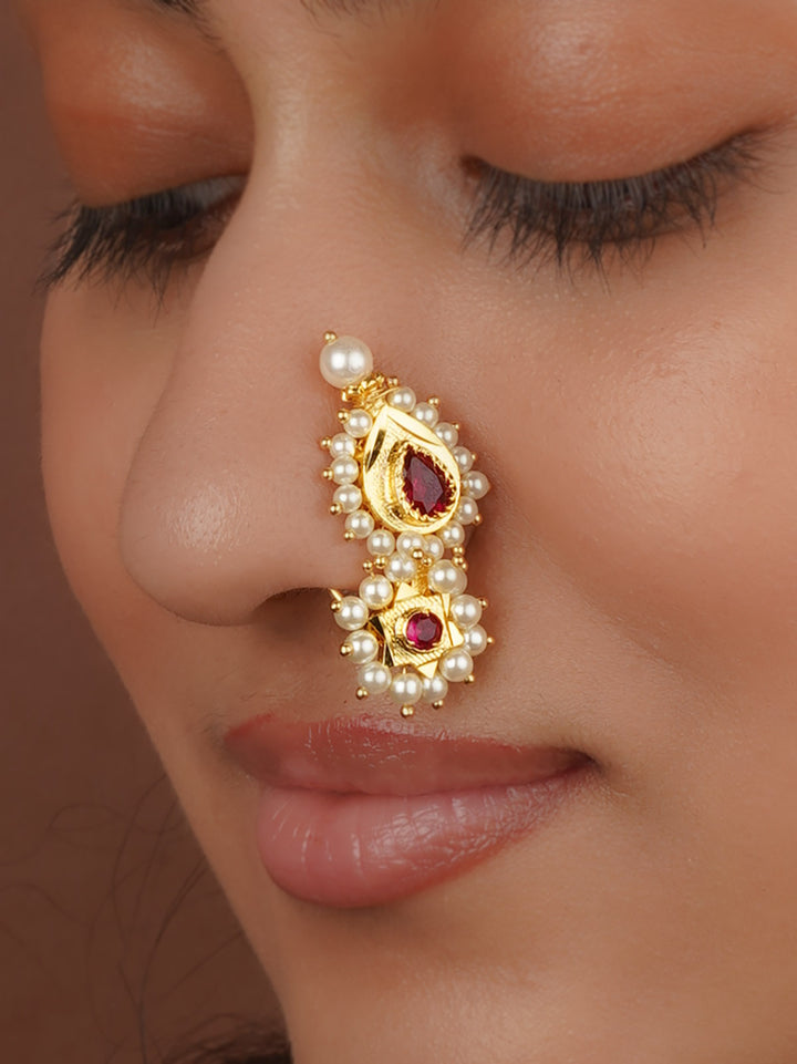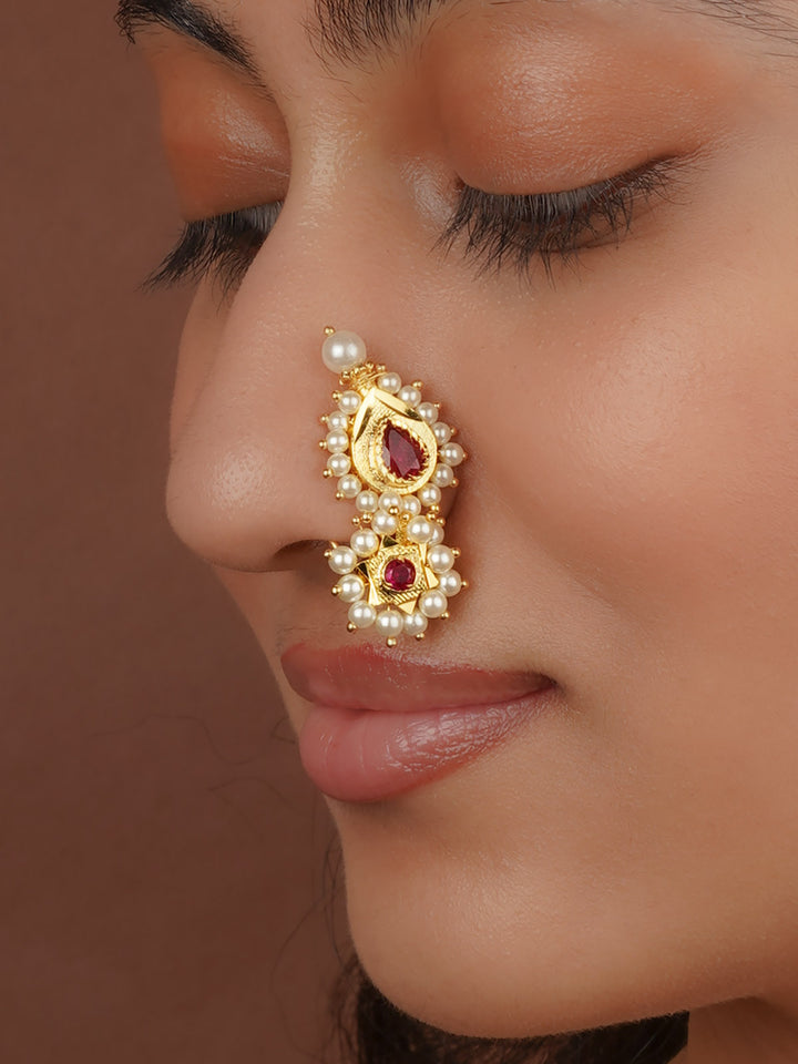 Pink Color Gold Plated Temple Nosering - TMPNTH53P