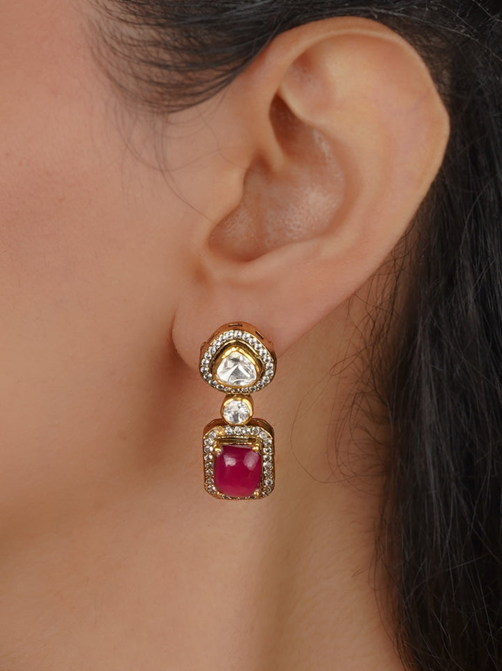 Pink Color Victorian 925 Silver Earrings - VCSL925-EAR25