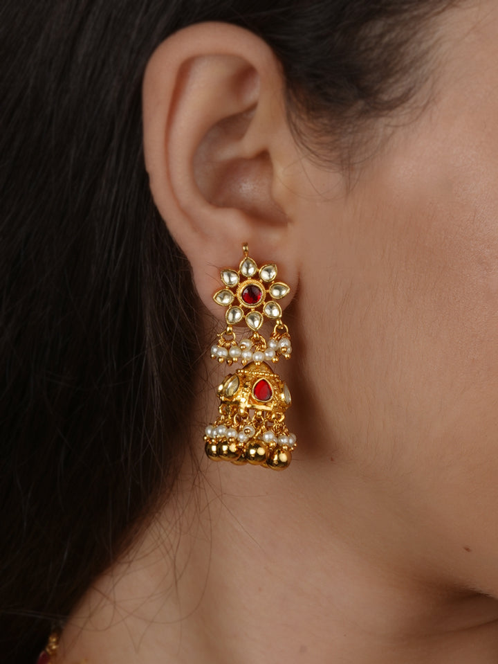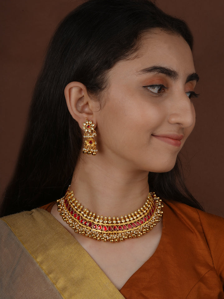 Red Color Gold Plated Jadau Kundan Necklace Set - MS2738YR