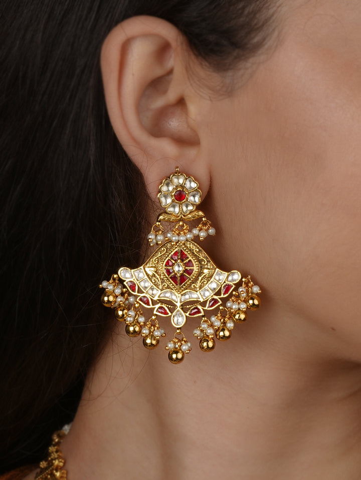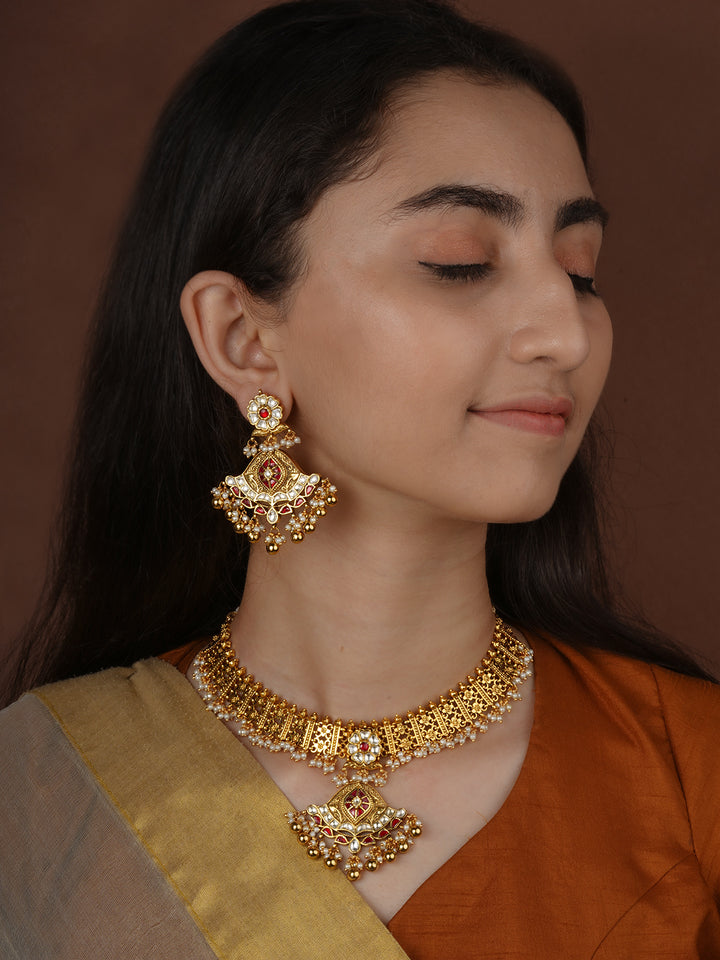 Red Color Gold Plated Jadau Kundan Necklace Set - MS2739YR
