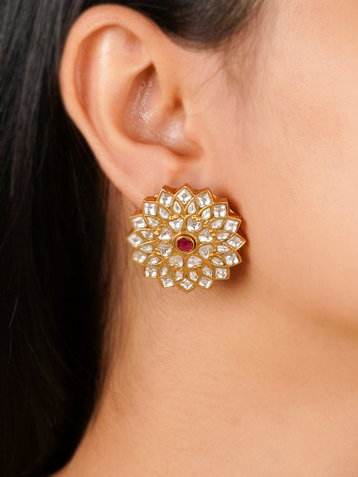 Our Thappa Jadau collection is made with a unique technique generally seen only in real Polki jewellery. We use Faux Polki stones cut in a special way that shine like uncut polkis and set then ‘laakh’ for setting the stones and giving them the look of the Thappa jewellery. Our Thappa Jadau collection is plated in 18kt gold and finished with semi-precious beads and hangings.