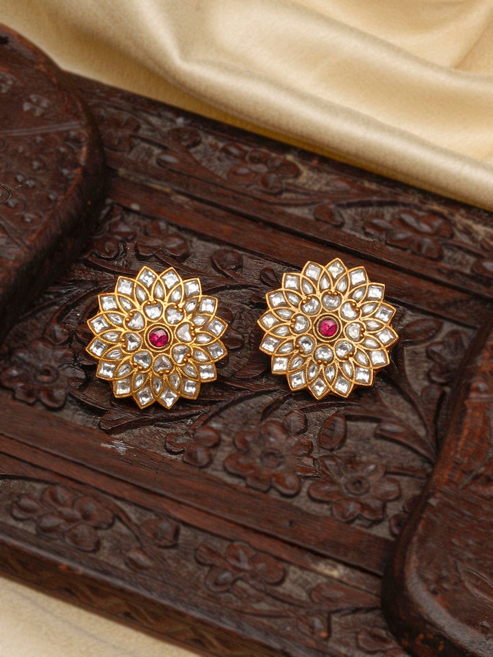 Pink Color Gold Plated Thappa Jadau Kundan Earrings - TJ-E106WP