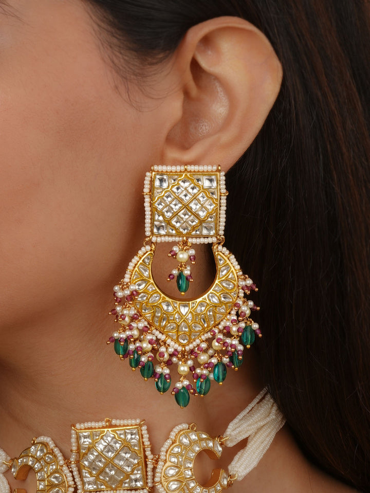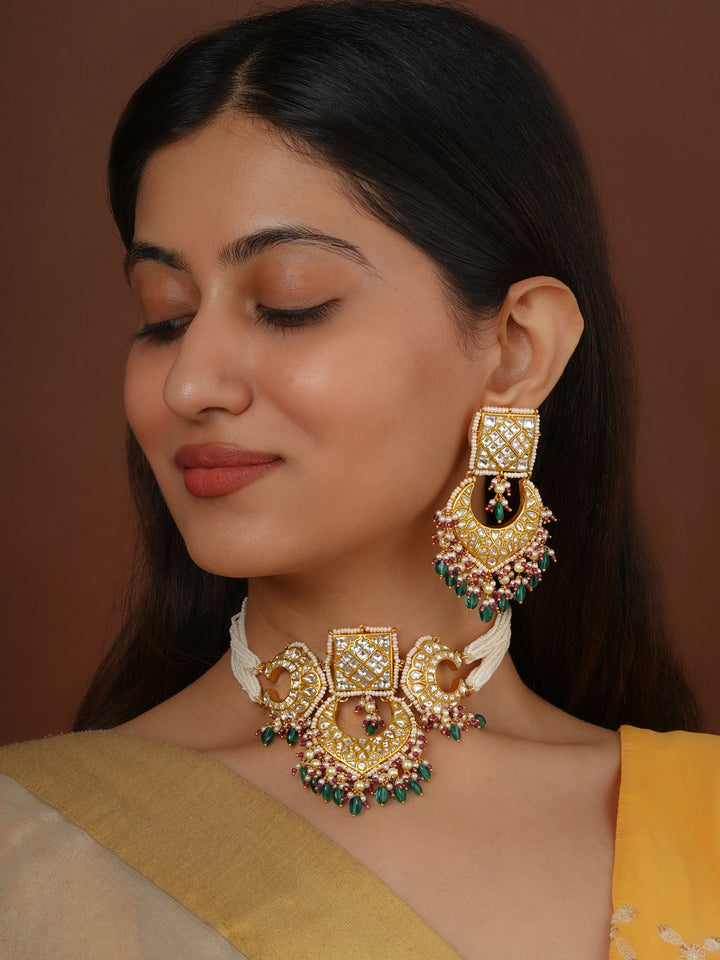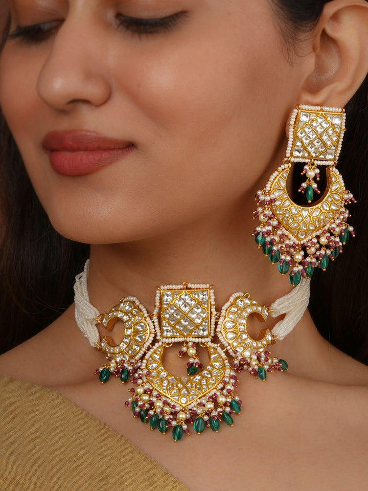 Multicolor Gold Plated Thappa Jadau Kundan Necklace Set - TJ-S6A
