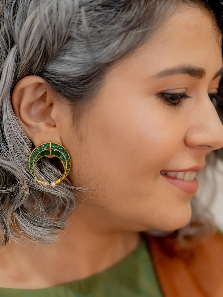 Green Color Gold Plated Earrings - TK-EAR5GR