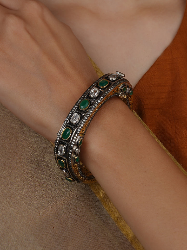 Each piece is a quiet celebration of fine detailing—floral vines, miniature carvings inspired by Indian craftsmanship, finished in soft, antique hues reminiscent of vintage mirrors and dusky heirlooms. Designed for those drawn to timelessness, this collection carries the romance of old India wrapped in a refined silhouette, made to be worn like poetry on skin.
