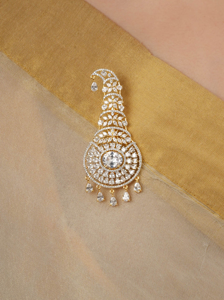 White Color Gold Plated Faux Diamond Brooch - CZBRC1GSL