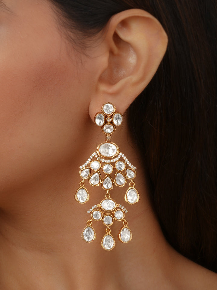 White Color Gold Plated Faux Polki Earrings - PK-E140